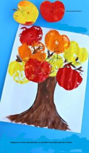 Utiliser des pommes coupées en 2 comme tampons, un peu de peinture orange et hop place à la créativité !