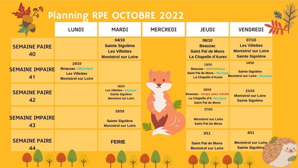 Le mois de septembre se finissant, veuillez trouver le planning du mois d’octobre…planning temps collectifs OCTOBRE 2022